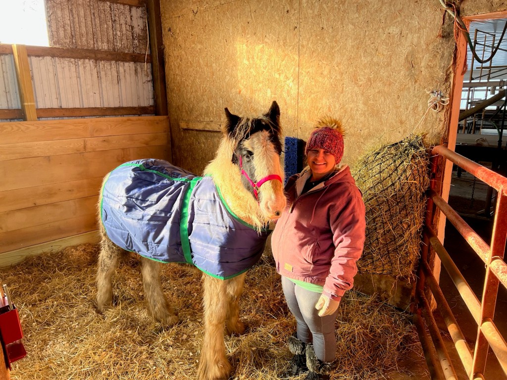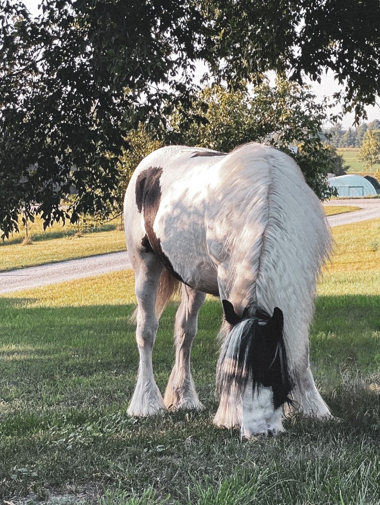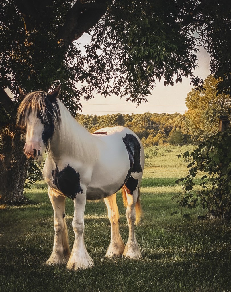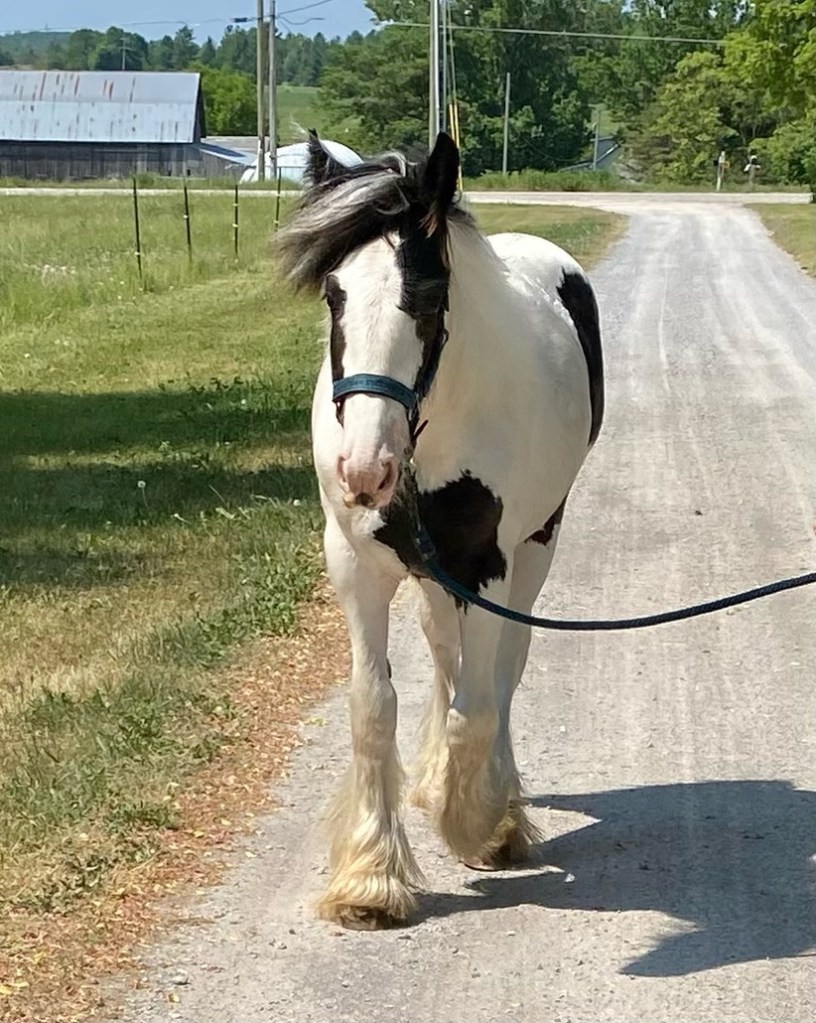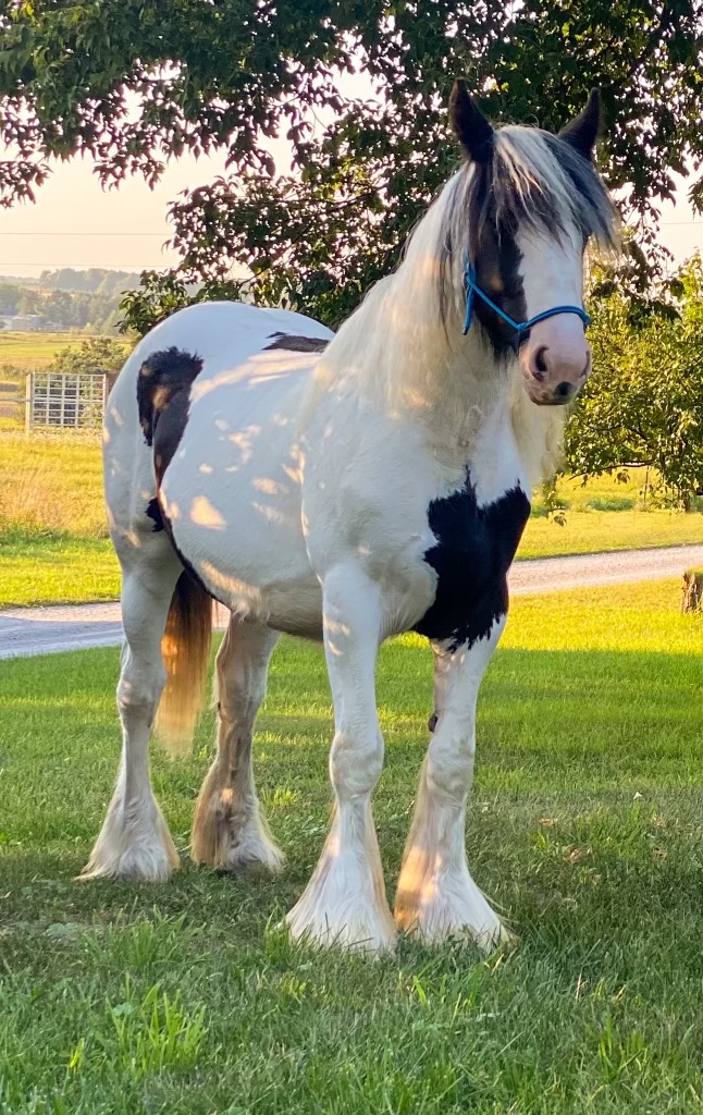 Olivia was our first Gypsy Vanner added to our small herd. She has a soild predigree, size, color and temperament with quality bone and feather.