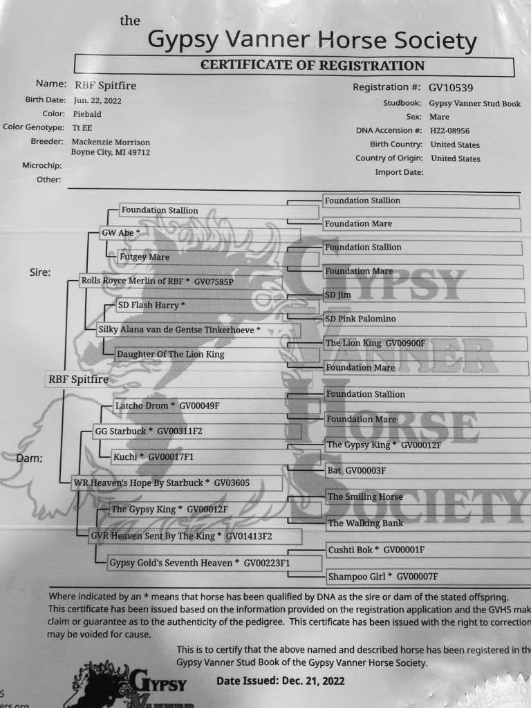 On her sires side she goes back to notable lines such as SD Flash Harry and The Lion King, while her dam is line bred on The Gypsy King.